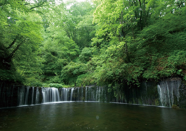 Shiraito Falls, one of Karuizawa’s famous tourist spots, is fed throughout the year by rainwater that percolates through mountain soil and emerges after about six years underground.