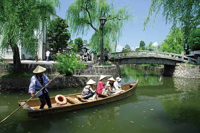 Riverboats carrying cargo formerly plied the Kurashiki River, which runs through the Bikan Historical Quarter. Now boats carry tourists for rides along the river, preserving the area’s traditional ambience.