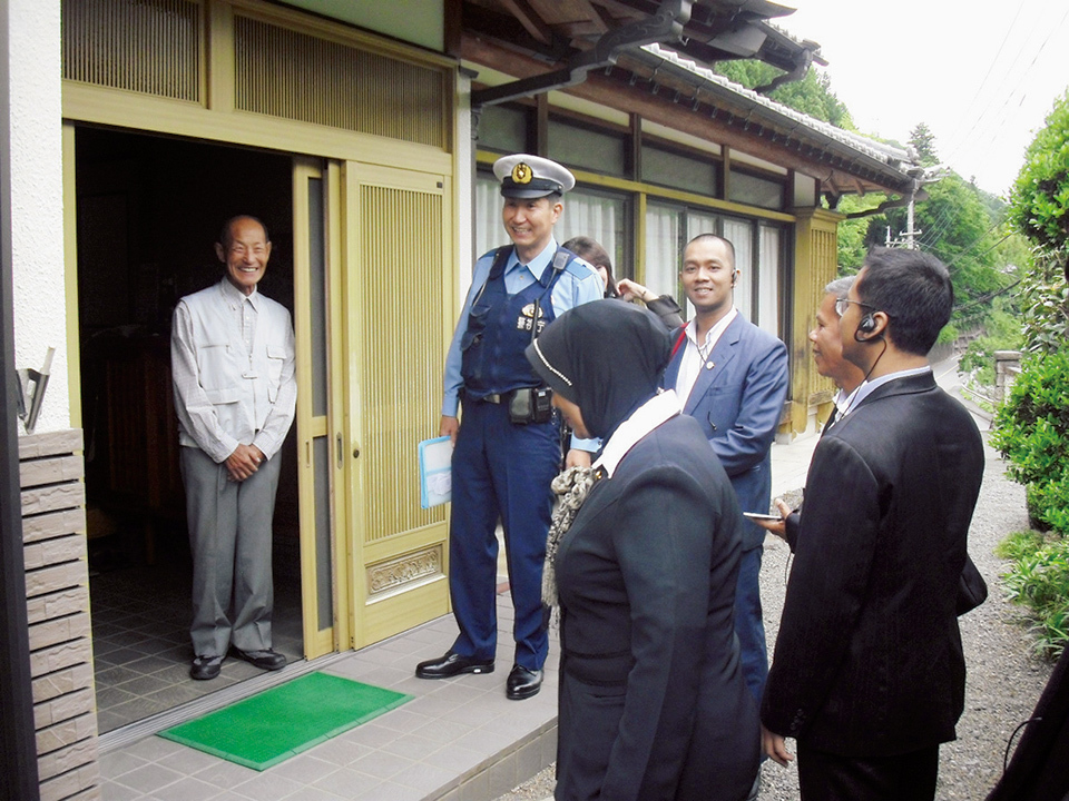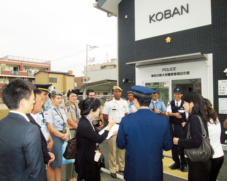 In cooperation with the Japan International Cooperation Agency (JICA), the Japanese police are providing training for police officials from developing countries regarding the Koban system, the functions and features of policing based on trust and cooperation with local residents. The training programs include site visits in which participants visit Koban, meet police officers stationed there, and accompany them on their rounds, such as routine visits to residents’ homes, where officers provide information on crime prevention and listen to residents’ concerns. They see the importance of activities aimed at preventing crimes and observe how officers build residents’ trust in the police. The programs also include classroom sessions, where participants are encouraged to consider and elaborate their experience of studying the Japanese Koban system and to modify and develop the system to fit their own countries’ customs and culture.