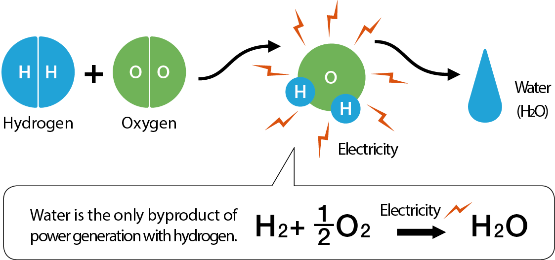 When hydrogen is used as a power source, the only byproduct is water; no carbon dioxide is emitted.