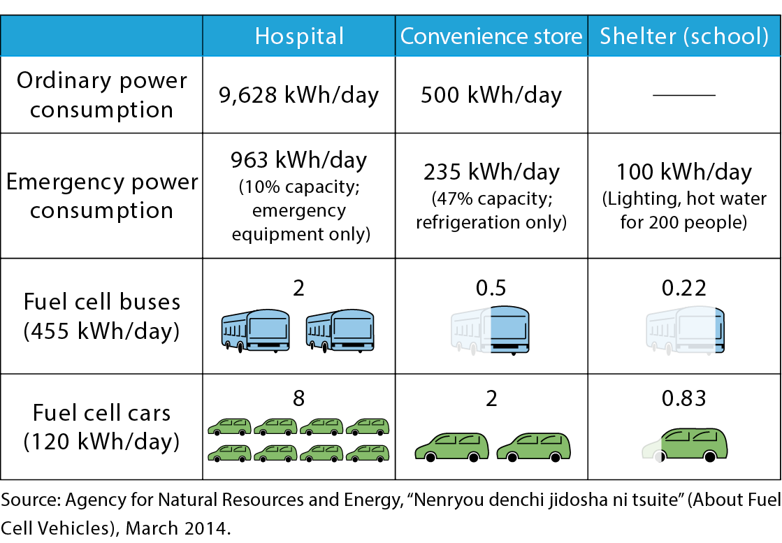 Hydrogen can be used as a source of energy for emergency power generation when regular power supplies are cut off by disasters.