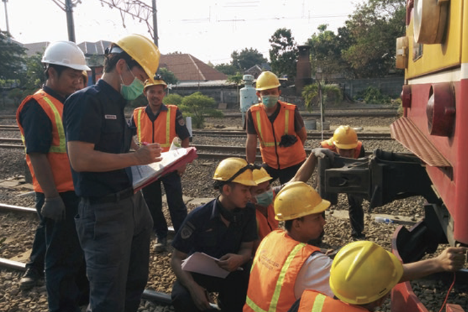 Kengo Maeda, the dispatched employee, started out by exhaustively checking the railway’s worksites, where he found room for improvement in the approach of employees toward maintenance. In Japan, preventive maintenance is the rule, but at the Indonesian railway it was common to fix railway cars only after trouble happened. Because of the lack of proper maintenance, parts tended to wear out quickly, causing operational problems.