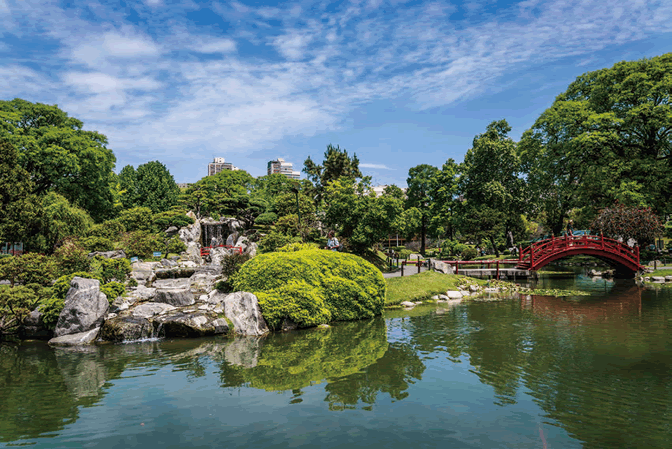 The Japanese Garden of Palermo Woods was originally built and donated to Buenos Aires by the Japanese immigrant community to commemorate the marriage of Crown Prince Akihito and Princess Michiko, the current emperor and empress of Japan, when they visited Argentina in 1967. At the request of the local Japanese Association, Inomata undertook a major refurbishing and expansion of the garden in 1978 and 1979 to make it more authentically Japanese. In the four decades since then, the Japanese Garden has soothed the spirits of visitors and has served as a bridge to Japanese culture.