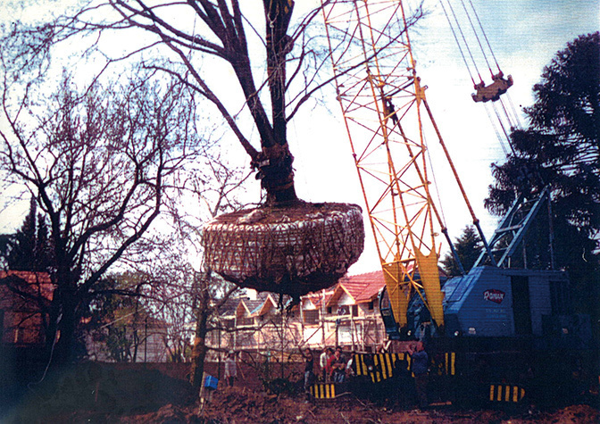 Trees’ roots are bound with straw and rope—a Japanese technique called tarumaki—before they are transplanted as part of the repair and expansion of a Buenos Aires ring road. Argentinians were greatly surprised at the transplanted trees’ survival rate of 95%