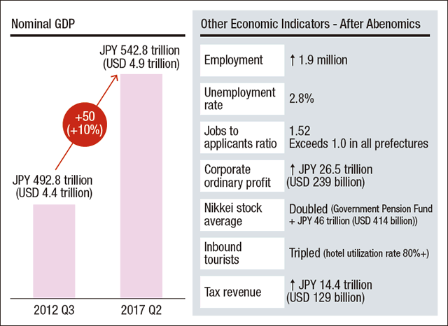 The breakfast started off with a few words from Abe. He elucidated the remarkable changes that have happened through Abenomics such as increases in nominal GDP, employment, and corporate ordinary profit. At the same time, he pointed out that Japan also recognizes its need to pursue changes even further— increase productivity, better utilize retained earnings and fulfill the great potential of Japan’s SMEs and startups. Abe also stressed the importance of free trade and declared his unwavering commitment to making the Trans-Pacific Partnership (TPP) Agreement happen.