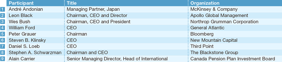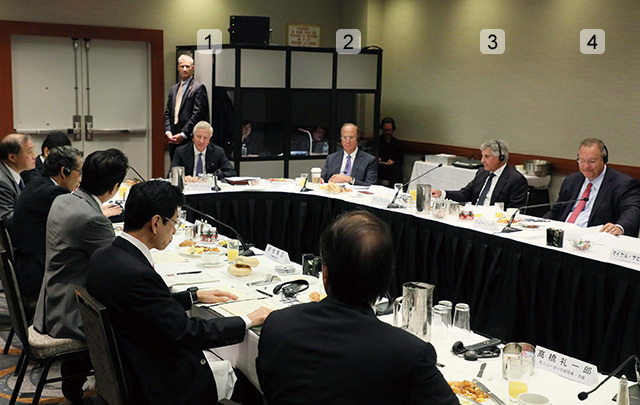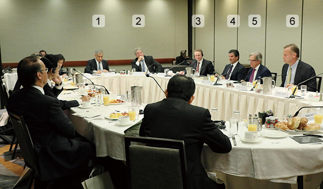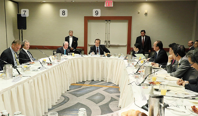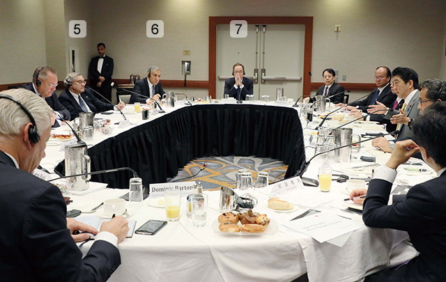Prime Minister Abe invited 15 world-renowned business leaders to breakfast during his visit to the United Nations General Assembly in New York City (Sept. 19, 2017). Abe and his guests—CEOs from leading manufacturers, asset management companies, institutional investors, and consulting and agri-business firms who were interested in and optimistic about the Japanese economy—had an active dialogue about investing in Japan.