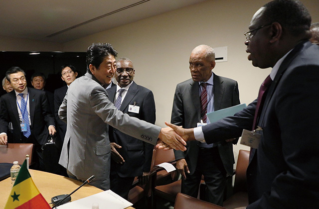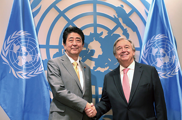 Attending the fourth Japan-Pacific Islands Leaders Meeting in New York, where he exchanged views with leaders and other officials of Pacific Island countries with the aim of achieving stability and prosperity of their region. (September 2017)