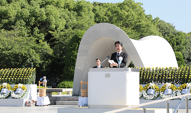 Participating in the Hiroshima Peace Memorial Ceremony held in Peace Memorial Park in Hiroshima City. Seventy-two years have passed since an atomic bomb was dropped on Hiroshima on August 6, 1945. (August 2017)