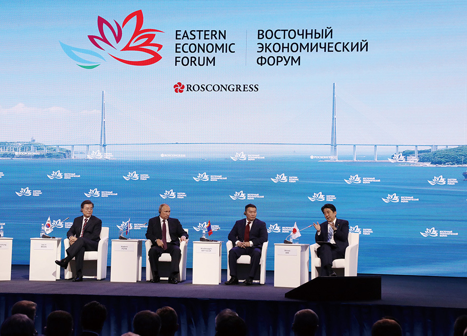 Visiting Vladivostok, the Russian Federation, where he attended the 3rd Eastern Economic Forum with H.E. Mr. Vladimir Vladimirovich Putin, President of the Russian Federation, H.E. Mr. Moon Jae-in, President of the Republic of Korea, and H.E. Mr. Khaltmaa Battulga, President of Mongolia. (September 2017)