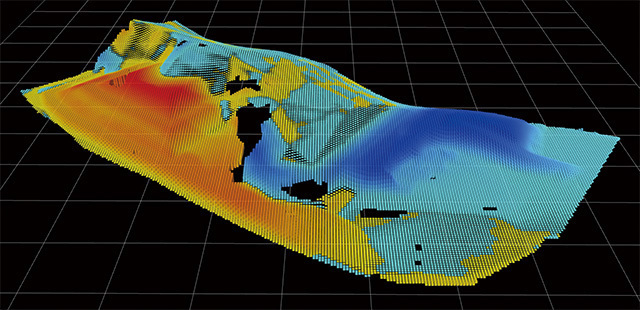One of the benefits of Smart Construction is a stunning improvement in productivity. Survey work that used to require two workers to cover several hundred points per day while advancing only a few meters at a time can now be done in less than an hour using specialized drones. Another advantage is that the 3D survey data obtained from the drones has much higher precision in terms of terrain measurement, with accuracy that has improved from units of several meters down to just a few centimeters. Additionally, new functions have been added to assist the operation of construction machinery at the worksite. For example, the digging depth of a hydraulic excavator can be automatically controlled to a precision of ±30 mm based on 3D data, eliminating unnecessary work from over-digging. There are also advantages from a safety standpoint. Normally, an assistant would be required to stand near the construction machine to direct the operator —a dangerous task in itself. But automatic control eliminates the need for an assistant, significantly improving safety. Another benefit is that operations that once required a certain degree of expertise could now be handled by non-expert operators. Smart Construction is already in use at over 3,300 sites throughout Japan, and will be test marketed in North America, Australia, and other regions within the year.