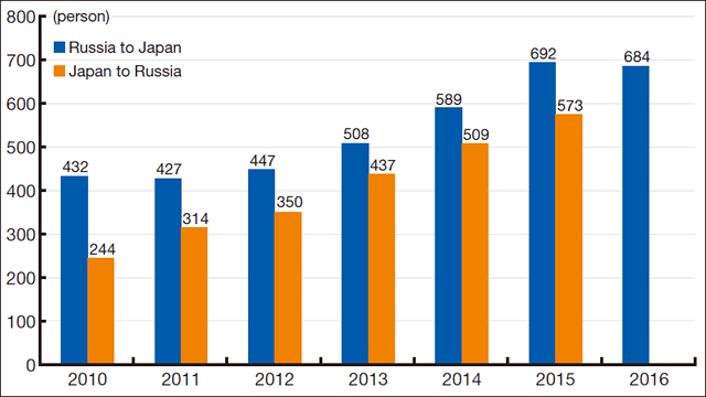 *The number of Japanese exchange students to Russia in 2016 is yet to be totaled.