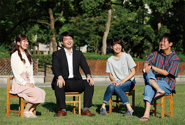 Four college students involved in the exchange project between Kobe and Yekaterinburg. From left to right: Sakina Naoshima, Yoshizumi Teranishi, Kurumi Sakamoto, and Takuya Ueda. Sakamoto, who will play the traditional Japanese shamisen, says that it is his first visit to Russia and that he is looking forward to learning more about the country.