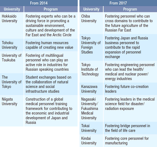 The current generation of university students will build the future, and student exchange between Japan and Russia is increasing. During bilateral talks with President Putin on the occasion of Prime Minister Abe’s visit to Moscow in 2013, the two heads of state discussed improving exchange between young people from their countries and vowed to further expand opportunities for such exchange. Exchange between Japanese and Russian students has increased in response, with Japan currently hosting 684 students from Russia (as of May 1, 2016) and having sent 573 to Russia in 2015. The number of exchange agreements between universities in both countries has already reached 381 (as of 2014).