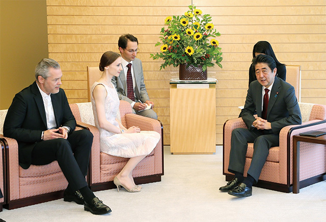 Zakharova and her husband Repin, a world-renowned violinist, paid Prime Minister Shinzo Abe a courtesy call after the opening of Russian Seasons. Prime Minister Abe told Zakharova that he was deeply moved by her performance.