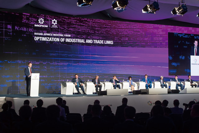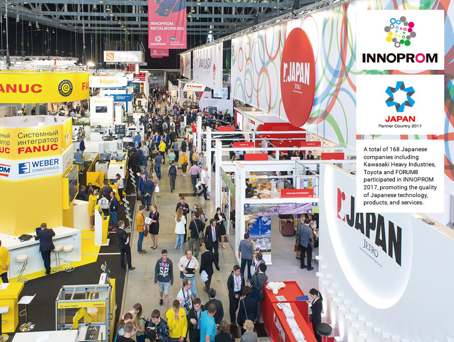INNOPROM, one of Russia’s largest industrial trade fairs, was held in Ekaterinburg from July 10 to 13. The event was a major success, with over 600 companies from 20 different countries exhibiting. Japan served as the partner country for INNOPROM 2017, working together with Russia to bring the event to a new level. President Putin, expressed his gratitude for Japan’s partner-country role at a joint press conference with Prime Minister Abe during his visit to Japan in December 2016. To meet the high expectations, Japanese government and business worked together for preparing for the exhibition. About 170 Japanese businesses and organizations participated in the “Japan Pavilion,” the second largest number of participants following the host country’s. In addition, the Japan-Russia Industrial Forum was held under the theme of “Japanese-Russian Cooperation for Industrial Optimization,” in which leaders of Japanese and Russian industries emphasized the importance of collaboration. Many Japanese and Russian industry executives also joined panels on topics such as small businesses and productivity growth, where they enjoyed a lively exchange of opinions and ideas.