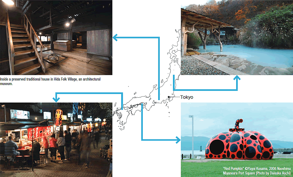 While an advocate of the “golden route” that includes established destinations such as Tokyo and Kyoto for first-time visitors, Schauwecker hopes more return travelers will seek out the charms of out-of-the-way locales. He points out that the Japanese countryside can give visitors “a genuinely different experience.” One of his top recommendations is a stay at a traditional hot spring inn as guests can enjoy authentic Japanese cuisine, dress, and bathing amid old-style architecture, and impeccable service.
