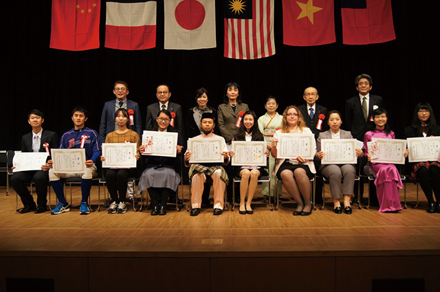 In 2016 Syukri (seated fifth from left in front) took part in a Japanese speech contest and received the grand prize.