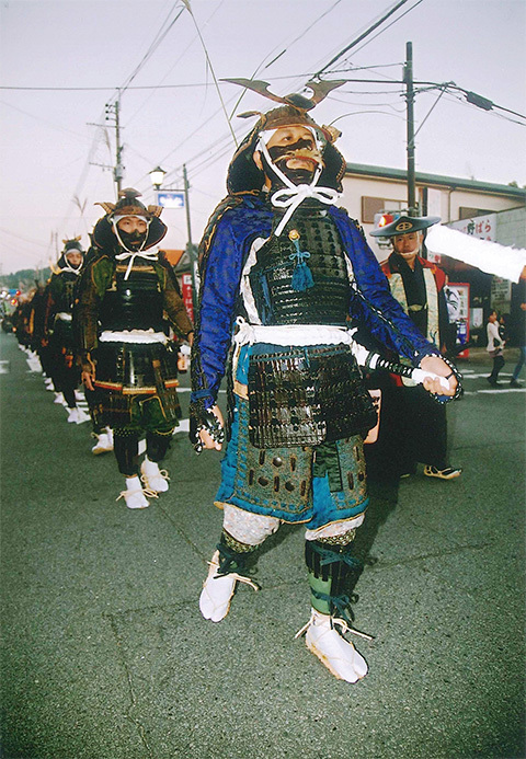 In traditional armor for the samurai parade at the Myoenji Mairi Festival in Hioki.