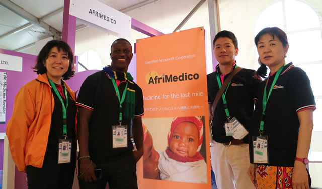 At the Japan Fair, an exhibition held in conjunction with TICAD VI (Tokyo International Conference on African Development) in Nairobi, Kenya in September 2016. AfriMedico exhibits at various events to promote their activities and gather contributions.