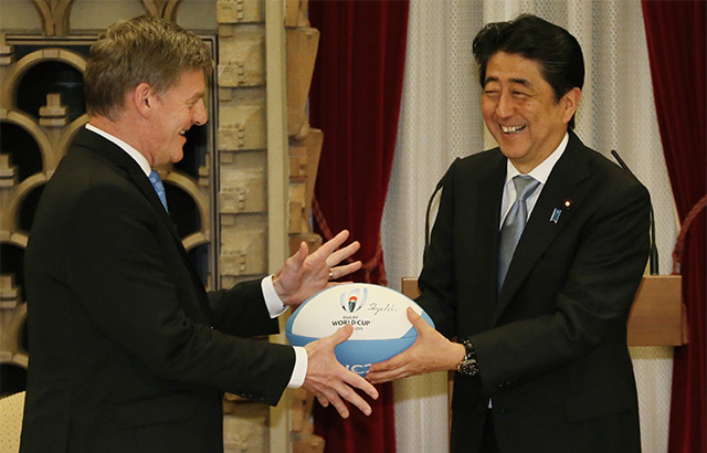 Hosted a summit meeting with the Rt. Hon. Bill English, Prime Minister of New Zealand, at the Japanese Prime Minister’s Office. Both prime ministers agreed to cooperate towards the successes of events including the 2019 Rugby World Cup to be held in Japan and the 2020 Tokyo Olympic and Paralympic Games. (May 2017)
