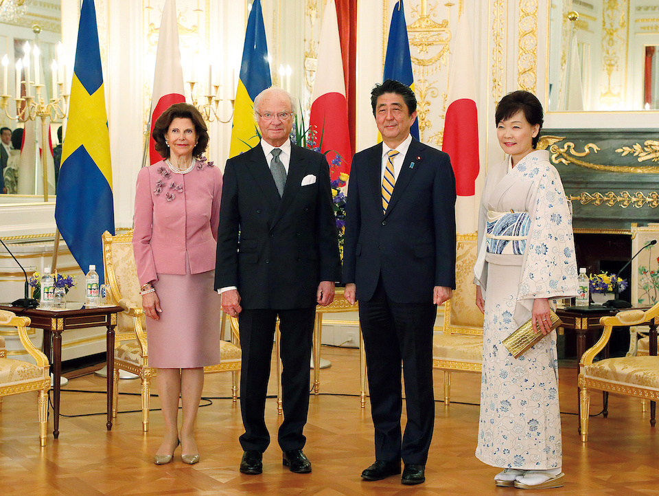 Met with His Majesty the King Carl XVI Gustaf and Her Majesty the Queen Silvia of the Kingdom of Sweden, at Akasaka State Guest House. (April 2018)