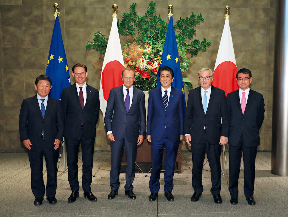 Met with H.E. Mr. Donald Tusk, President of the European Council and H.E. Mr. Jean-Claude Juncker, President of the European Commission and signed the Japan-EU Economic Partnership Agreement (EPA) and Strategic Partnership Agreement (SPA), at the Japanese Prime Minister’s Office. (July 2018)