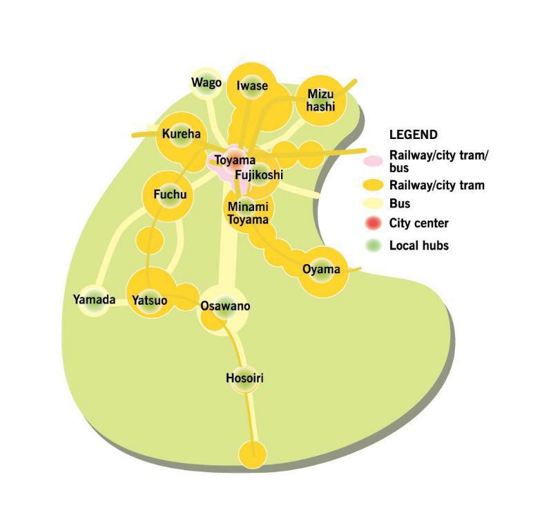 At the base of these efforts is the “Compact City Concept” formulated in 2002. Under this concept, Toyama revamped its Light Rail Transit (LRT) system and developed projects to concentrate the city’s services and population along the rail lines. The city aims to ease the burden of administrative costs and make the city an easier place to live in for citizens without cars. This policy has already led to the number of new arrivals to the city to overtake the number of people leaving, as well as a reduction in CO2 emissions. In June 2012, Toyama City was among the five world-leading cities cited in Compact City Policies, a report by the Organization for Economic Co-operation and Development (OECD).