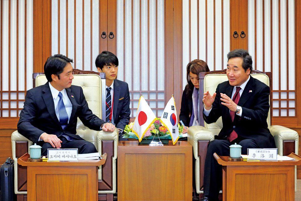 Han serves as both interpreter and envoy of friendship at the sister-city signing ceremony between Kochi Prefecture and Jeollanam-do, South Korea.