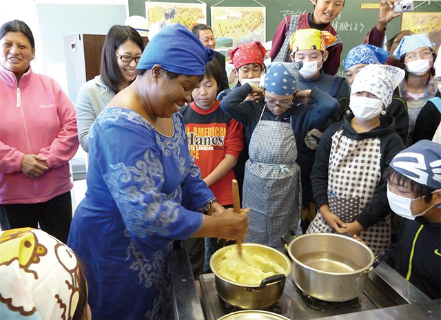 Elementary school students in Yokohama City learn about Malawian food as part of the “One School, One Country” project.