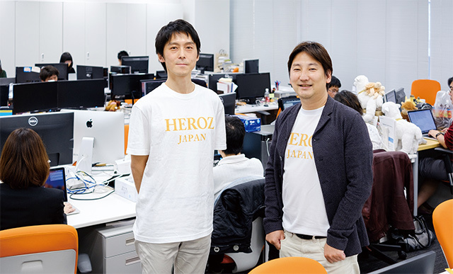 HEROZ, Inc. COO Tomohiro Takahashi (left) and CEO Takahiro Hayashi (right). HEROZ has more than 10 employees with amateur shogi rankings at the dan level, for which only high-level players qualify. Hayashi says, “We found out later that people we knew through playing shogi were superb programmers.” Takahashi adds, “It’s clear that shogi and programming are highly in tune with each other.”