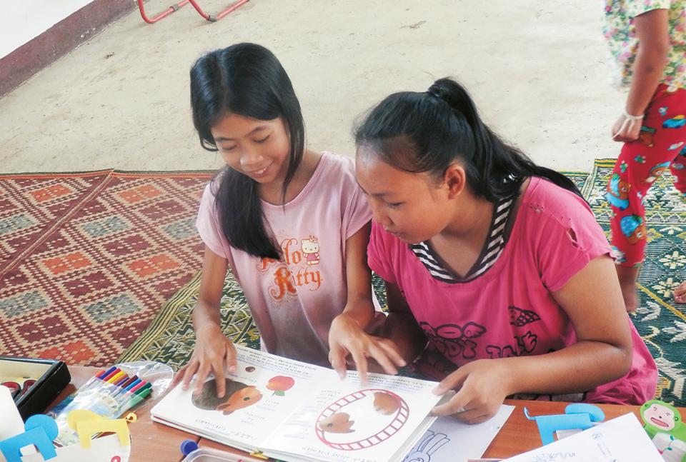 Children enjoying some picture books. Books have been bought with money raised, and many have also been donated.