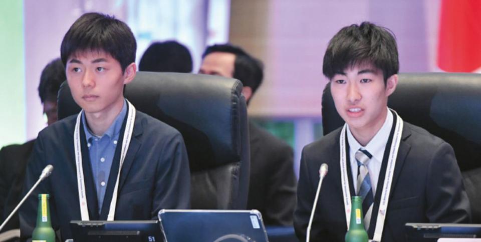 TANABE Takumi (left) and KOBAYASHI Keita presenting their ideas at the meeting.