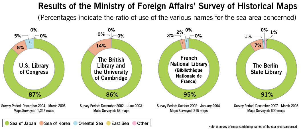 The name “Sea of Japan” is the only internationally established name for the sea area concerned. Japan strongly opposes unfounded arguments concerning the name “Sea of Japan” and is calling for a better understanding of the issue and support for Japan's position from the international community in order to maintain the sole use of the name, “Sea of Japan.”
