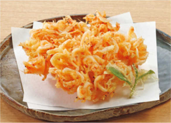 Pamela recommends this delicious deep-fried dish with crispy texture called sakura shrimp kakiage.
