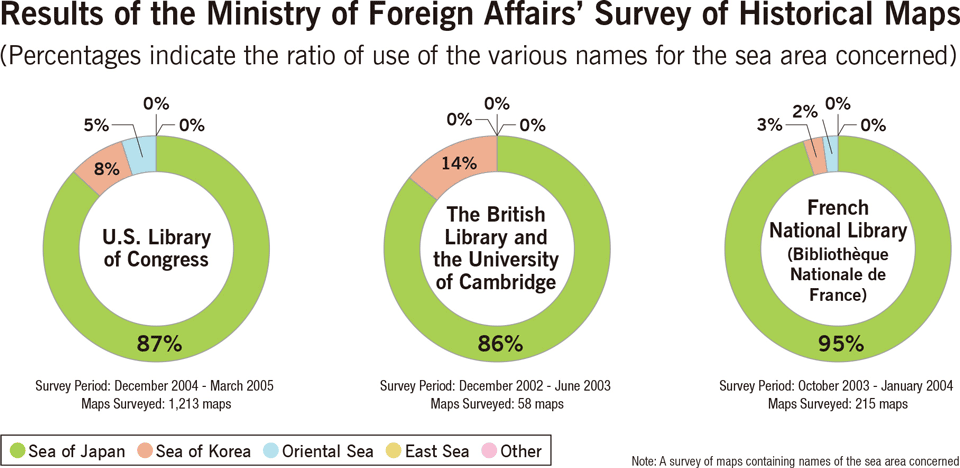 If all countries followed the ROK and started naming the seas to their east or west as “East Sea” or “West Sea,” countless similar names would spread around the world causing unnecessary confusion. Japan will continue to oppose any attempts to change the only historically and internationally established name for the “Sea of Japan” to “East Sea,” a name that is used only within the ROK.