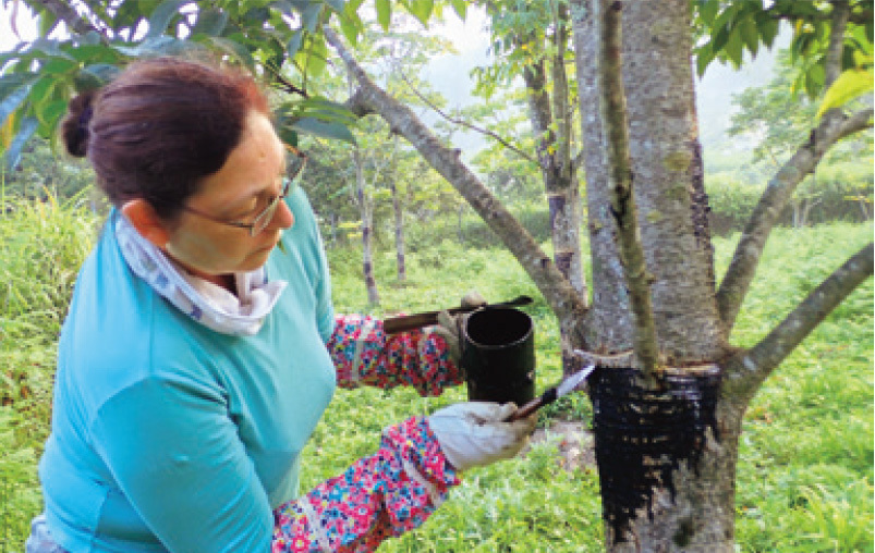 The sap is extruded one drop at a time by cutting grooves into the tree. Apparently, only trees grown in Japan produce urushi that can withstand its climate.