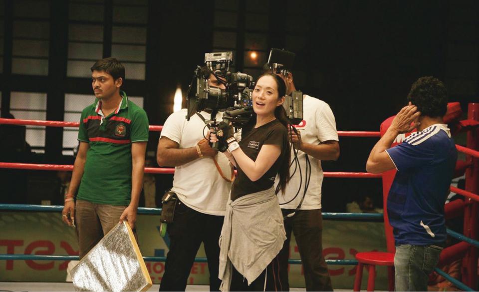 In the biopic Mary Kom (2013), which depicted the first half of an Indian female boxer’s life, Nakahara had the camera pursue the movements of a character through completely dark rooms and expressed the twilight of early morning. For the boxing ring scenes, she used a handheld camera to move in concert with the boxers’ movements and capture an effect more intimate than any tripod camera could achieve.