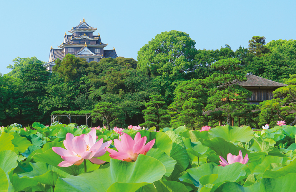 The Health Ministers’ Meeting of the G20 Summit will be held in Okayama City, Okayama Prefecture, on October 19 and 20, 2019. One of the Three Great Gardens of Japan, the Okayama Korakuen, is considered to be the city’s symbol. The spacious garden, created under the command of the local lord about 320 years ago, has long been loved as a place for enjoying the flowering of the seasons. In the early summer, visitors will encounter adorable pink lotus blossoms. In the background of the photograph is Okayama Castle, once the residence of the feudal lord, with its beautiful black lacquer walls.