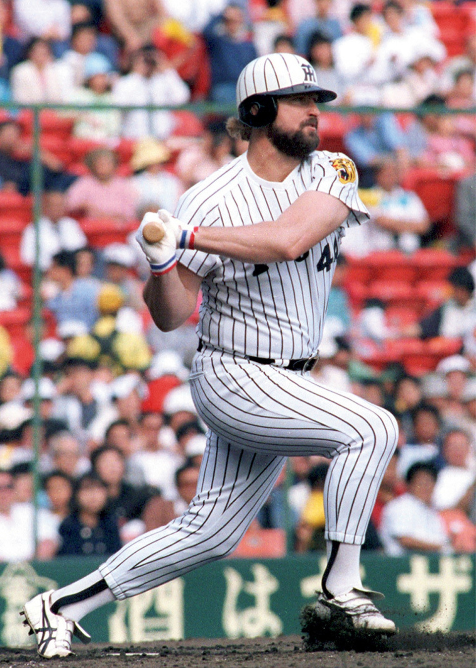 Randy Bass at the plate at Koshien Stadium, the home of the Hanshin Tigers, in 1987.