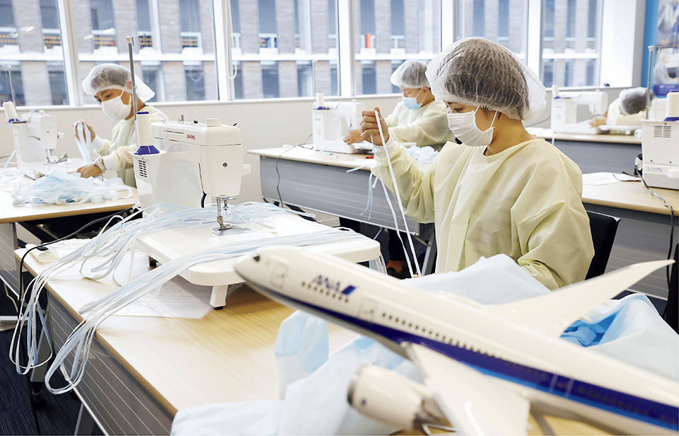 Upon learning about a labor shortage for the manufacture of the gowns, ANA Group, owner of the major Japanese airline All Nippon Airways Co., Ltd., decided that it was time, with the continuing slump in air travel caused by COVID-19, to make what contributions it could, even in an area completely unrelated to the company’s central business.