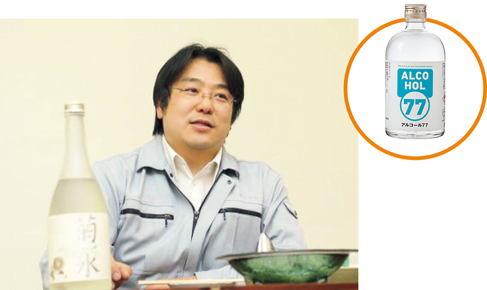 Kikusui Shuzo Co., Ltd., a venerable brewer with a wealth of expertise, was among the first to come out with a product. Since the 1920s, when the company installed the first refrigerated storage facility in Japan, Kikusui Shuzo’s ethos has always been about attempting new challenges. It may be this challenging spirit that empowered the company to overcome a variety of hurdles, including a regulation that required the installation of a dedicated production line to make ethanol for disinfectant. After consultations with the authorities to clear all regulatory issues, Kikusui Shuzo finally decided to produce and sell sake with the same alcohol concentrations as sanitary ethanol. In April, it started selling a new product named “Alcohol 77,” a spirit containing 77% alcohol, which soon went viral on social media and garnered widespread appreciation for the company’s goodwill and social contribution.