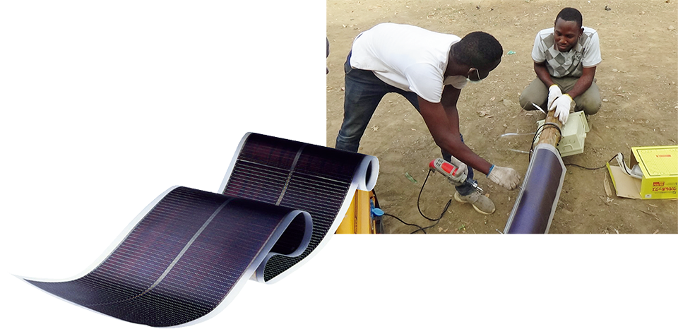 The electrification rate of rural areas in the sub-Saharan region is only about 30%, and Good on Roofs’ mission is to boost that figure to 50%. Flexible solar sheets, an idea born of a specialist roof constructor in Japan are thus helping to light up Africa’s future.