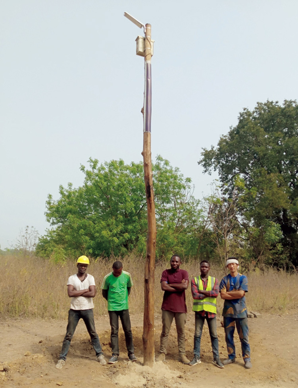 In 2015, a small Japanese roof construction company installed in a Nigerian village 65 streetlights, which feature flexible solar panels wrapped around the lampposts. In conventional solar-powered streetlights, the solar panel is positioned above the light itself; however, in Africa, there is so much dry dust and sand in the air that particles soon collect on top of the panels, preventing the lights from operating. Those problems can be eliminated with special solar sheets that are easy to remove and maintain.