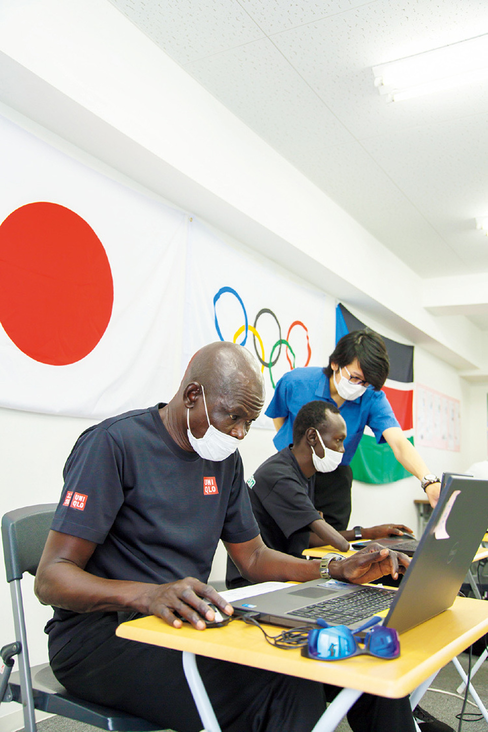 The South Sudanese athletes take Japanese classes in the morning. At their request, they are also learning how to use PCs.