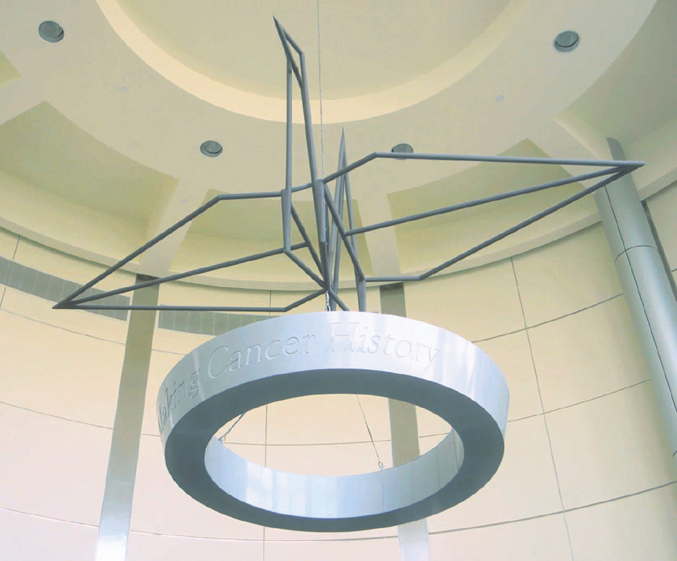 Embodying a wish for patients to recover, a sculpture of origami cranes adorns the MD Anderson Proton Therapy Center.