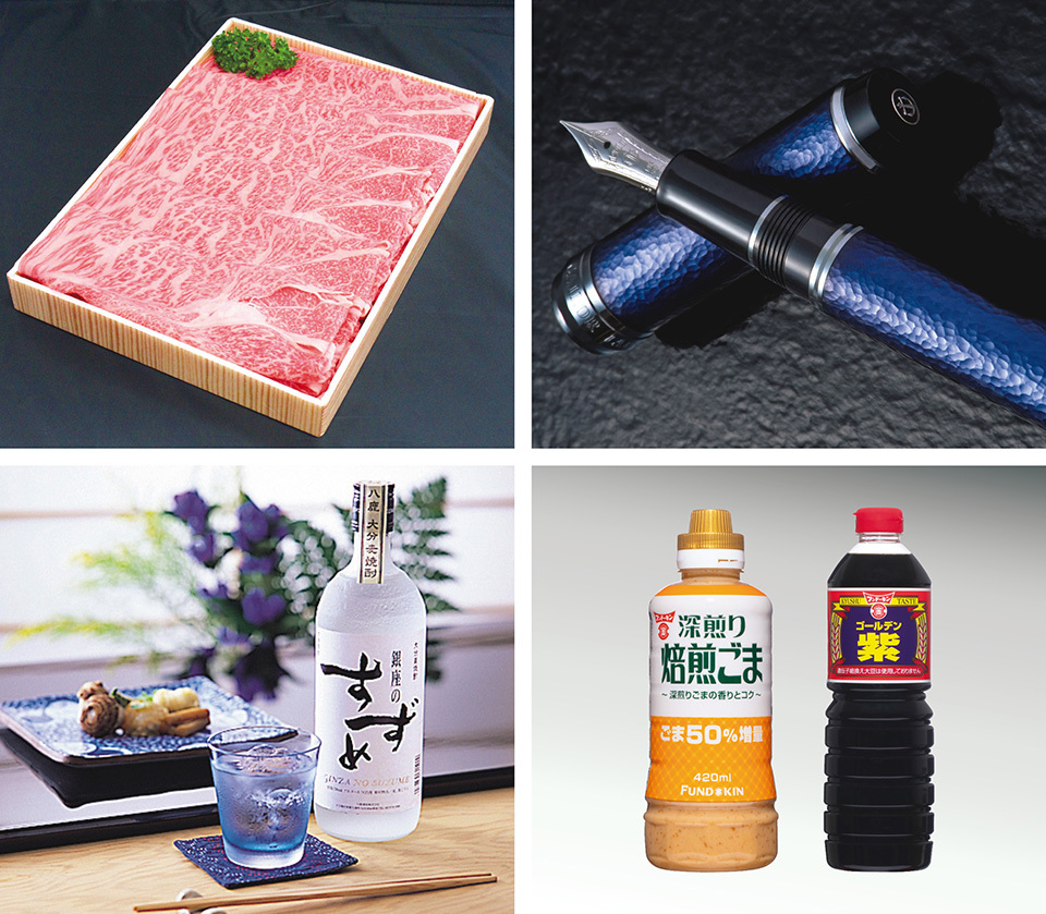 Its main business is as a wholesaler of these Oita products. It is developing the export of wagyu, fish, and shiitake mushrooms to Taiwan, as well as promoting soy sauce, miso products, and other agricultural goods. In 2019, Oita Made introduced the upscale “JAPAN BLUE fountain pen,” using a newly developed metal material colored with natural indigo.