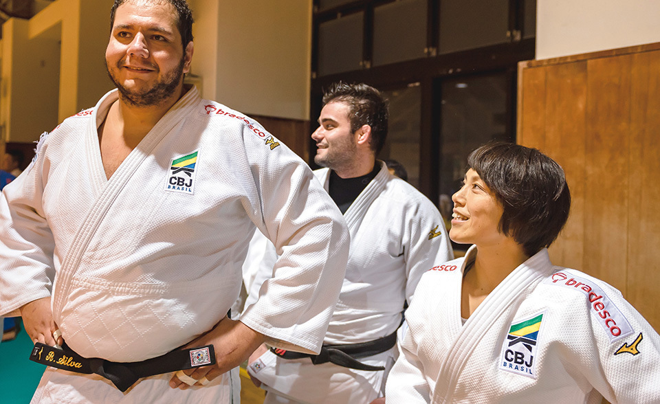 Brazil’s national judo team held a camp at a dojo (training hall) in Nara. In between rounds of free practice against judoka (judo practitioners) from Japan, France, Ukraine and elsewhere, the team’s members took their turns going to FUJII Yuko to seek advice. Fujii listened attentively to what each person had to say, and gave specific suggestions in her fluent Portuguese.